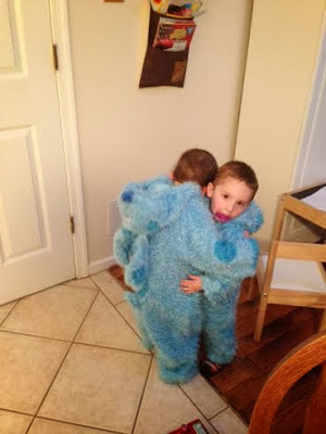 Aidan adores his best friend Teddy - Teddy helps him to be brave and try new things. Teddy is like a brother to him, and I can't wait to see what Aidan thinks of Teddy's new baby brother in a couple of weeks. We never would have gotten Aidan into a Halloween Costume this year without Teddy!